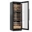 Стеклянная дверь — дополнительный изящный штрих к общему дизайну модели. Специальное покрытие защищает вино от влияния ультрафиолетовых лучей, которые проникают, если шкаф находится в солнечной комнате. Цвет корпуса — черный. Дверь можно перевесить на другую сторону, поэтому вариантов размещения его в доме становится больше.