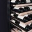 Электронное управление помогает быстро разобраться в том, как функционирует эта модель, и легко настроить все необходимые параметры. На дисплее отображаются данные, которые собирают датчики в камере. Лампочки, расположенные внутри, хорошо подсвечивают бутылки. Всего полок, на которых можно разместить коллекцию, в шкафу 14 шт.