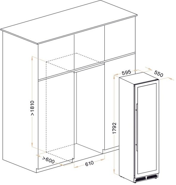 Высота встраиваемых винных шкафов может варьироваться примерно в таком же диапазоне. Стандартные размеры встраиваемых винных шкафов должна соответствовать габаритам мебели, так что высота их может быть несколько меньше, чем у отдельно стоящих моделей.