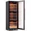 Современные винные шкафы всех типов, в том числе компрессорные, темоэлектрические и абсорбционные, оснащаются электронной системой управления — кнопочной или сенсорной. Панель управления, с помощью которой производится регулировка параметров работы, может размещаться внутри винного шкафа за дверцей или снаружи в верхней части корпуса. Второй вариант более удобен, поскольку для изменения параметров не нужно открывать дверцу. Кроме того, такое расположение панели управления позволяет поддерживать более стабильную температуру в камере. Однако для больших винных шкафов в классическом стиле из ценных пород дерева предпочтительнее скрытая панель управления, которая не портит их внешний вид.