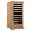 Стеклянная дверь — дополнительный изящный штрих к общему дизайну модели. Специальное покрытие защищает вино от влияния ультрафиолетовых лучей, которые проникают, если шкаф находится в солнечной комнате. Хранение становится еще безопаснее и герметичнее благодаря нескольким слоям стекол. Цвет корпуса — бук.
