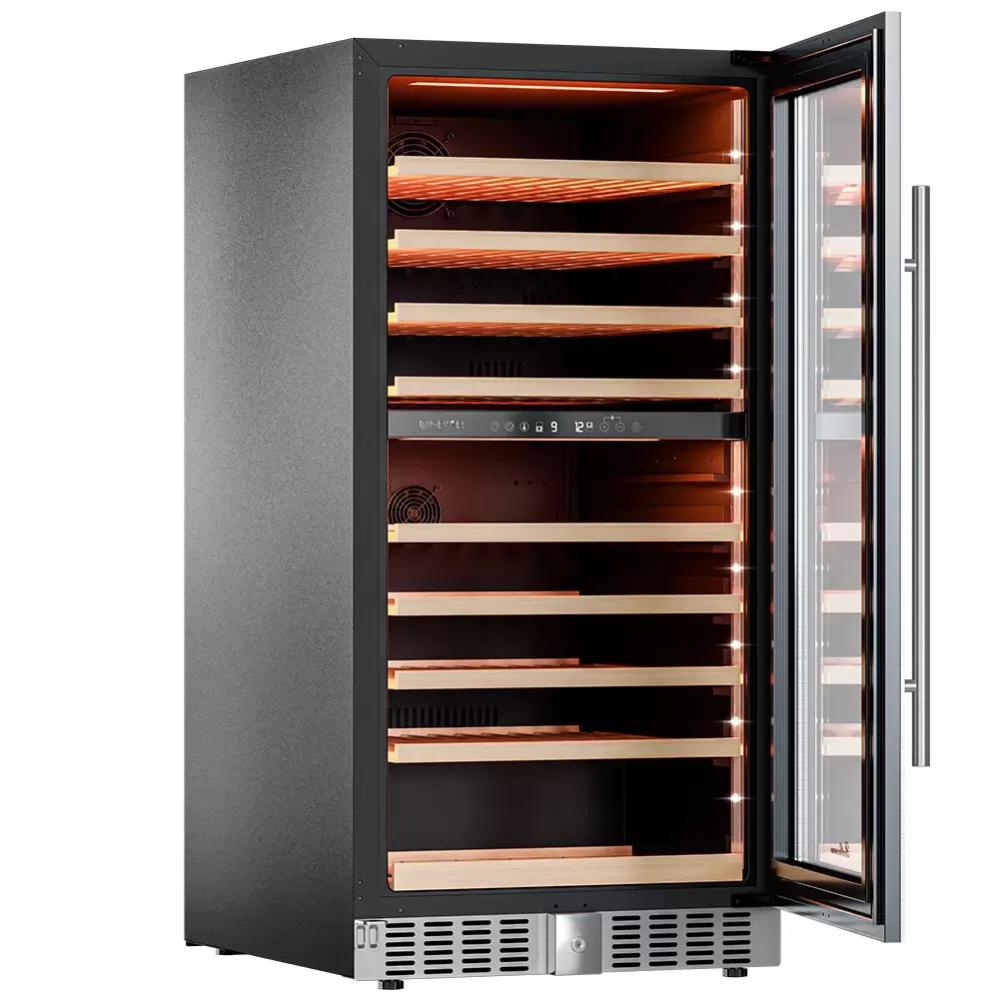 Двухтемпературные предназначены для хранения в разных условиях красного и белого вина. Трехтемпературные — для белого, красного, игристого. Мульти — система хранения из более чем трех зон с разным климатом.