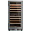 Стеклянная дверь — дополнительный изящный штрих к общему дизайну модели. Специальное покрытие защищает вино от влияния ультрафиолетовых лучей, которые проникают, если шкаф находится в солнечной комнате. Хранение становится еще безопаснее и герметичнее благодаря нескольким слоям стекол. Цвет корпуса — нержавеющая сталь. Дверь можно перевесить на другую сторону, поэтому вариантов размещения его в доме становится больше.