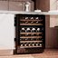 Современные винные шкафы всех типов, в том числе компрессорные, темоэлектрические и абсорбционные, оснащаются электронной системой управления — кнопочной или сенсорной. Панель управления, с помощью которой производится регулировка параметров работы, может размещаться внутри винного шкафа за дверцей или снаружи в верхней части корпуса. Второй вариант более удобен, поскольку для изменения параметров не нужно открывать дверцу. Кроме того, такое расположение панели управления позволяет поддерживать более стабильную температуру в камере. Однако для больших винных шкафов в классическом стиле из ценных пород дерева предпочтительнее скрытая панель управления, которая не портит их внешний вид.