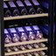 Кнопки для управления подсветкой выносятся на панель управления. Лампы синего, белого или голубого цветов могут располагаться в верхней части камеры или на боковых сторонах. Дополнительное освещение может устанавливаться в винных холодильниках с зоной для сервировки: она обеспечивает лучший обзор и доступ при подготовке вина к подаче.