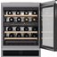 Винный холодильник оснащен одной дверью со стеклопакетом в стальной рамке, что обеспечивает не только эстетический вид, но и дополнительную защиту от ультрафиолетового излучения. Дверной упор расположен справа, но при необходимости предусмотрена возможность перенавешивания. Внутреннее освещение обеспечивает комфортное использование даже в условиях недостаточной освещенности.