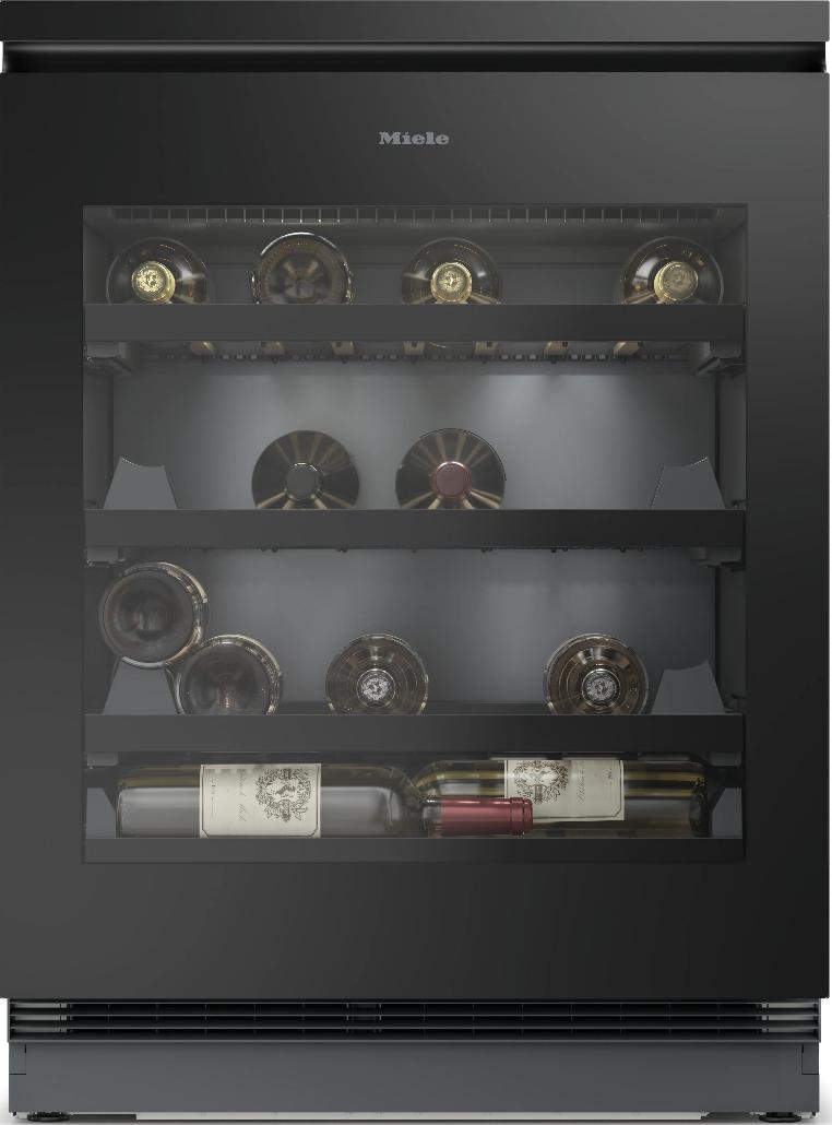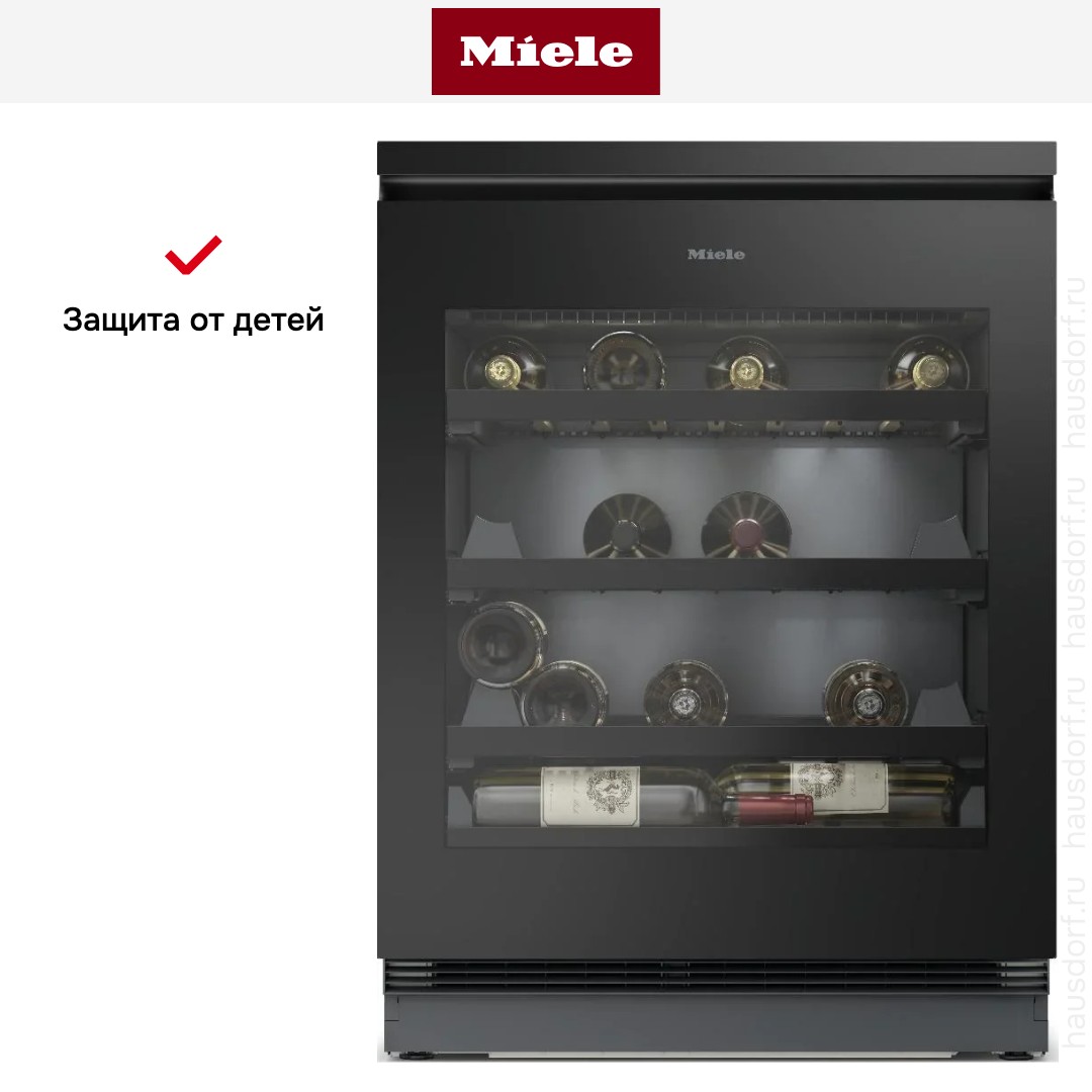 Встраиваемый винный шкаф Miele KWTUS 7054 F сочетает аккуратный минимализм дизайна и инженерную точность настройки работы. Он относится к монотемпературным устройствам и предоставляет возможность хранения напитков лишь в одной температурной зоне. Внутренний объем около 110 литров вмещает до 44 стандартных бутылок объёмом 0,75 л. Это удобно для небольшой коллекции и хорошо подходит для оснащения домашней кухни. Компрессорное охлаждение помогает поддерживать постоянную температуру, а динамическая система равномерно распределяет потоки воздуха внутри.