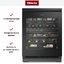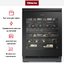 Электронное управление помогает быстро разобраться в том, как функционирует эта модель, и легко настроить все необходимые параметры. На дисплее отображаются данные, которые собирают датчики в камере. Лампочки, расположенные внутри, хорошо подсвечивают бутылки. Всего полок, на которых можно разместить коллекцию, в шкафу 5 шт.