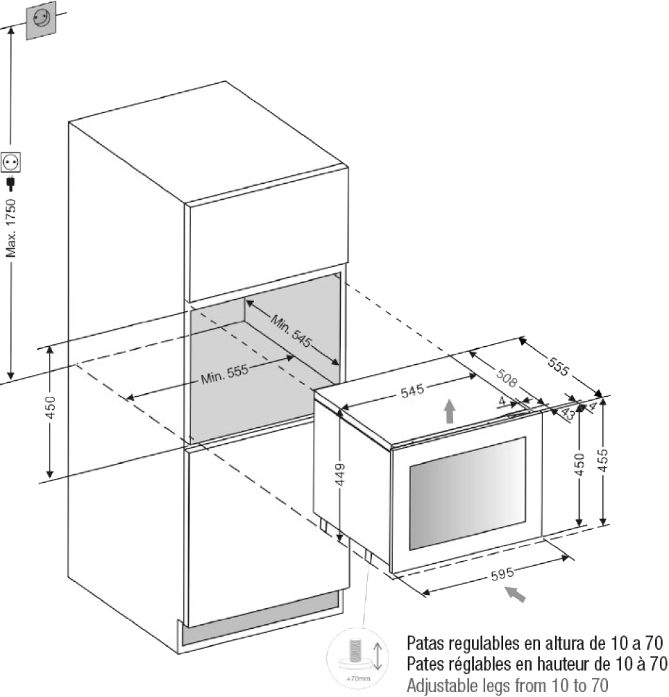 Некоторые отдельно стоящие винные шкафы, а также модели, встраиваемые в мебельную колонну, шкаф или другое закрытое пространство, оснащаются системой забора воздуха и вентиляционной решеткой, расположенными спереди в нижней части корпуса. Зазоры между корпусом шкафа и стенками мебели необходимы и в этом случае.