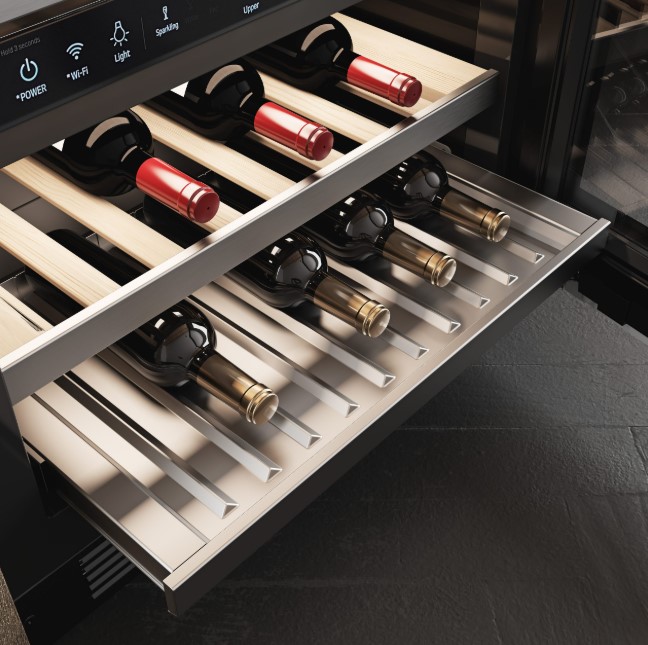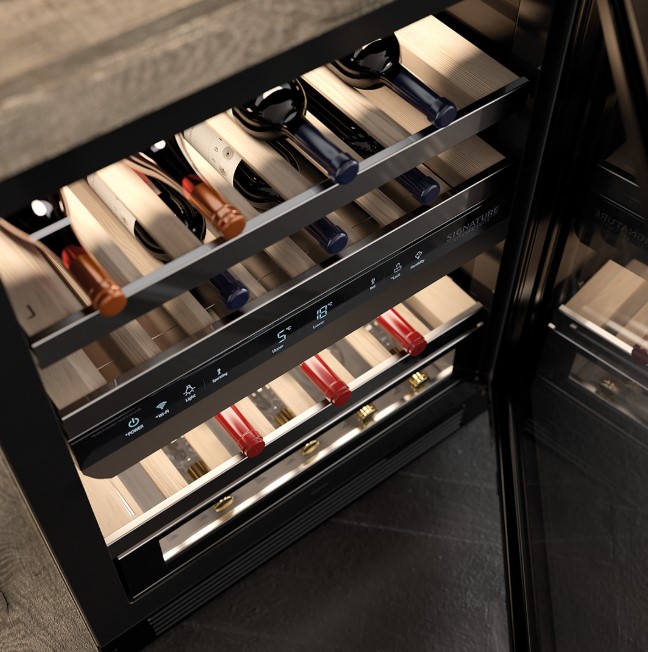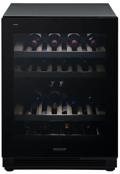 Винный холодильник Signature Kitchen Suite SKSUW2401G имеет две температурные зоны, в которых одновременно можно хранить разные сорта алкоголя и выставлять разные сочетания настроек. Он встраивается в нишу, что удобно, если у вас ограничен метраж помещения. Благодаря компактным размерам данная модель — отличный выбор для офиса, гостиничного номера. Количество бутылок, которое можно разместить с учетом полной комплектации и из расчета объема бутылки 0,75 л, — 41 шт.