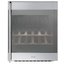 Встраиваемые холодильники для вина оснащаются специальной системой вентиляции: охлаждающая система у них находится в нижней части корпуса спереди. На такие устройства не навешивается мебельный фасад: дверца с затемненным стеклом остается на виду и открывается на достаточно широкий угол для свободного выдвижения деревянных полок.