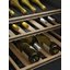 Полки в винных шкафах позволяют размещать бутылки для хранения в горизонтальном положении. Это необходимо, чтобы пробка постоянно смачивалась жидкостью и не пересыхала. Плотно закрытая пробка гарантирует, что внутрь бутылки не проникнет наружный воздух. Кислород, содержащийся в воздухе, может стать причиной ухудшения вкуса вина и даже его скисания. Кроме того, горизонтальное положение позволяет лучше оценить количество осадка. Материал изготовления полок выбирается, исходя из требований, предъявляемых к содержанию коллекции вин. Одним из основных требования является отсутствие или максимальное сокращение вибрации и хорошая фиксация бутылок на месте хранения. Даже если полка выдвигается, бутылки должны оставаться на своем месте. Второе требование исключает применение стеклянных полок, как в обычном холодильнике: на них почти невозможно зафиксировать бутылки.