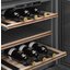 Полки в винных шкафах позволяют размещать бутылки для хранения в горизонтальном положении. Это необходимо, чтобы пробка постоянно смачивалась жидкостью и не пересыхала. Плотно закрытая пробка гарантирует, что внутрь бутылки не проникнет наружный воздух. Кислород, содержащийся в воздухе, может стать причиной ухудшения вкуса вина и даже его скисания. Кроме того, горизонтальное положение позволяет лучше оценить количество осадка. Материал изготовления полок выбирается, исходя из требований, предъявляемых к содержанию коллекции вин. Одним из основных требования является отсутствие или максимальное сокращение вибрации и хорошая фиксация бутылок на месте хранения. Даже если полка выдвигается, бутылки должны оставаться на своем месте. Второе требование исключает применение стеклянных полок, как в обычном холодильнике: на них почти невозможно зафиксировать бутылки.