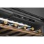 Встраиваемые холодильники для вина оснащаются специальной системой вентиляции: охлаждающая система у них находится в нижней части корпуса спереди. На такие устройства не навешивается мебельный фасад: дверца с затемненным стеклом остается на виду и открывается на достаточно широкий угол для свободного выдвижения деревянных полок.