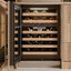 Ширина винного шкафа, как и другие их габариты, обязательно учитывается при выборе модели для домашнего или профессионального использования. Встраиваемые и отдельно стоящие модели выпускаются в самом широком ассортименте, так что разброс значений максимально велик. Неизменным спросом пользуются винные шкафы стандартной ширины — от 40 до 80 см, в современном и классическом стиле. Для встраиваемых шкафов наиболее удобной является ширина 60 см, позволяющая устанавливать их в кухонную тумбу или колонну. Вместимость их может быть самой различной и зависит в большей степени от высоты прибора. Маленькие винные шкафы с размещением на столешнице или даже с креплением к стене, рассчитанные на хранение от одной до десяти бутылок, могут иметь минимальную ширину от 13 см. На полках у них обычно помещается не более 5 бутылок, и используются они для охлаждения вина перед подачей. Большие винные шкафы с несколькими камерами и температурными зонами для длительного хранения и созревания разных сортов вина могут иметь ширину до 180 см, а максимальное значение этого параметра может составить 300 см. Как правило, это отдельно стоящие модели в деревянном корпусе с камерами side-by-side.
