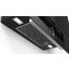 Воздух всасывается по периметру вытяжки через узкие щели. Он собирается в потоки, которые направляются прямо к фильтрам внутри, не рассеивается на кухне. Благодаря этой технологией вытяжку можно сделать компактнее и энергоэффективнее.