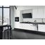 Воздух всасывается по периметру вытяжки через узкие щели. Он собирается в потоки, которые направляются прямо к фильтрам внутри, не рассеивается на кухне. Благодаря этой технологией вытяжку можно сделать компактнее и энергоэффективнее.