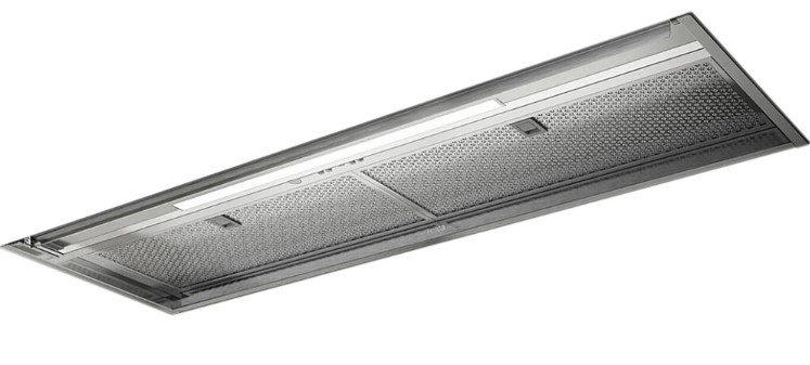 Вытяжка, встраиваемая в потолок, часто устанавливается над кухонным островом в просторной кухне и отличается достаточно высокой мощностью: она может работать как в режиме рециркуляции, так и в режиме отвода, так как воздуховод также скрыт в потолке. Вытяжки могут монтироваться в подвесной потолок либо устанавливаться в специальные многоярусные конструкции из гипсокартона непосредственно во время ремонта кухни. Для управления ими используется пульт ДУ.