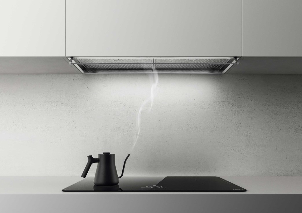 Вытяжки, встраиваемые в столешницу — эффективная инновация, которая подойдет для установки в кухне любой площади. Такие вытяжки размещаются за варочной поверхностью или рядом с ней. В отключенном состоянии всасывающая панель находится под столешницей, но после включения одной или нескольких конфорок она автоматически выдвигается при помощи специального лифтового механизма. Загрязненный воздух улавливается, не успевая распространиться по помещению. Когда вытяжка убрана, на виду остается только сенсорная панель управления. Недостатком подобных моделей является только сравнительно высокая цена.