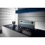Вытяжки, встраиваемые в столешницу — эффективная инновация, которая подойдет для установки в кухне любой площади. Такие вытяжки размещаются за варочной поверхностью или рядом с ней. В отключенном состоянии всасывающая панель находится под столешницей, но после включения одной или нескольких конфорок она автоматически выдвигается при помощи специального лифтового механизма. Загрязненный воздух улавливается, не успевая распространиться по помещению. Когда вытяжка убрана, на виду остается только сенсорная панель управления. Недостатком подобных моделей является только сравнительно высокая цена.