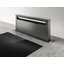 Вытяжки, встраиваемые в столешницу — эффективная инновация, которая подойдет для установки в кухне любой площади. Такие вытяжки размещаются за варочной поверхностью или рядом с ней. В отключенном состоянии всасывающая панель находится под столешницей, но после включения одной или нескольких конфорок она автоматически выдвигается при помощи специального лифтового механизма. Загрязненный воздух улавливается, не успевая распространиться по помещению. Когда вытяжка убрана, на виду остается только сенсорная панель управления. Недостатком подобных моделей является только сравнительно высокая цена.