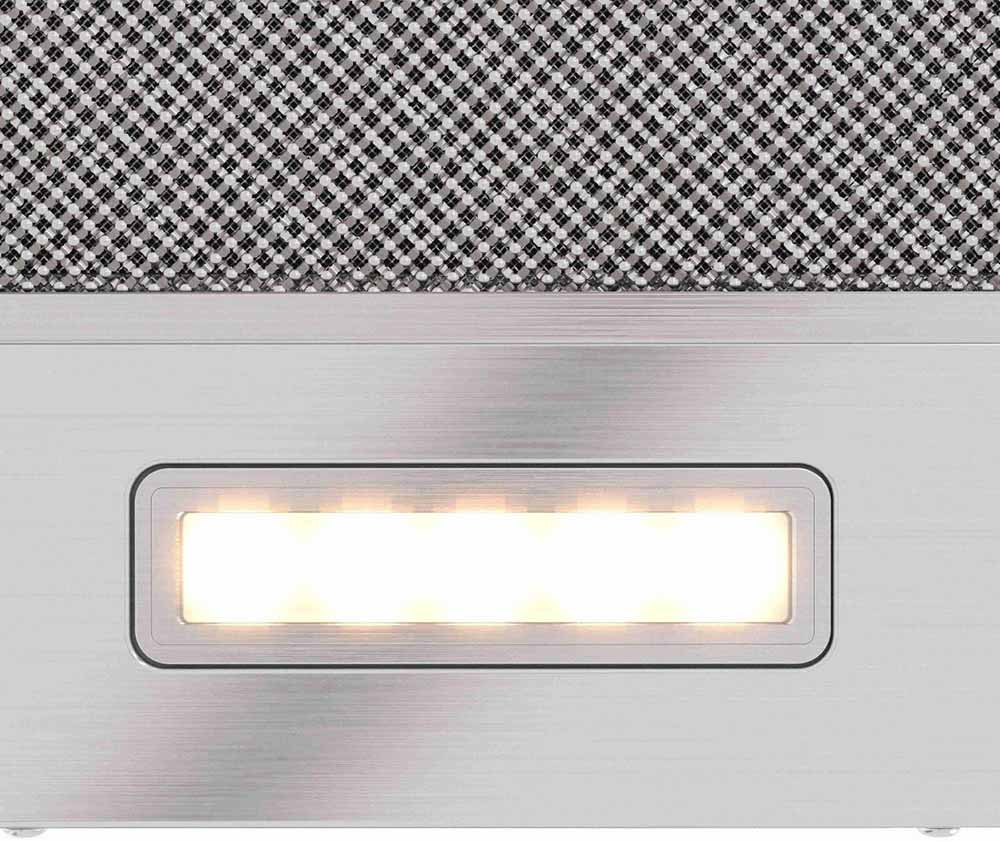 Встроенное освещение — функция, которая присутствует практически во всех современных вытяжках. Центрального освещения часто недостаточно для хорошего обзора рабочей зоны, особенно если над ней установлен подвесной шкаф. Интегрированные в вытяжку лампы позволяют готовить с комфортом, не напрягая зрение, их можно включать независимо от использования самой вытяжки.