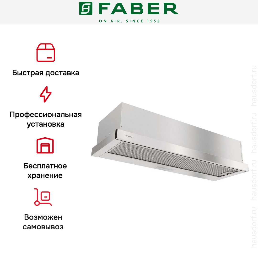 Итальянская компания Faber завоевала мировую известность благодаря своим оригинальным и надежным вытяжкам. История бренда началась в 1955 году: инженер А. Галасси с партнерами основал компанию по производству изделий из пластика — самого модного в то время материала. Оригинальную вытяжку фирма представила в 1958 году — она получила название по наименованию пластмассы Plexiglas.