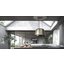 Подвесная конструкция — разновидность островной, она также крепится к потолку над изолированной варочной поверхностью. Ее особенность — тросы, на которых держится основание. Благодаря этому вытяжка кажется невесомой, зачастую напоминает светильник и отлично вписывается в интерьер.