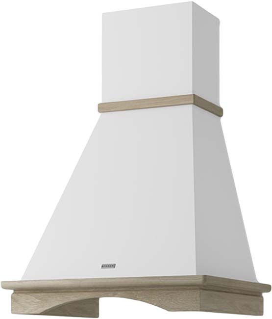 Еще один универсальный цвет — белый, он особенно хорошо подходит для небольших кухонь, так как зрительно способен расширить пространство. На белом фона меньше заметны капли воды и даже частицы жира. В классическом или античном белом выполняются купольные и каминные вытяжки, угловые и встраиваемые модели. Светлые кремовые тона, оттенок слоновой кости — наиболее распространенный вариант для больших вытяжек с окантовкой из натурального дерева.