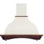 Особенно разнообразен ассортимент классических вытяжек с окантовкой из натурального дерева. Корпус таких моделей выполняется в спокойном белом или бежевом цвете, хорошо сочетающемся с оттенками натурального дерева — мореного дуба, бука, вишни или ореха. Нередко для окантовки используется окрашенное дерево в тон с цветом купола: особенно популярны оттенки ванили, бежевый и кремовый. Иногда дерево специально оставляют неокрашенным, чтобы пользователь мог подобрать оттенок самостоятельно.