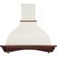 Особенно разнообразен ассортимент классических вытяжек с окантовкой из натурального дерева. Корпус таких моделей выполняется в спокойном белом или бежевом цвете, хорошо сочетающемся с оттенками натурального дерева — мореного дуба, бука, вишни или ореха. Нередко для окантовки используется окрашенное дерево в тон с цветом купола: особенно популярны оттенки ванили, бежевый и кремовый. Иногда дерево специально оставляют неокрашенным, чтобы пользователь мог подобрать оттенок самостоятельно.