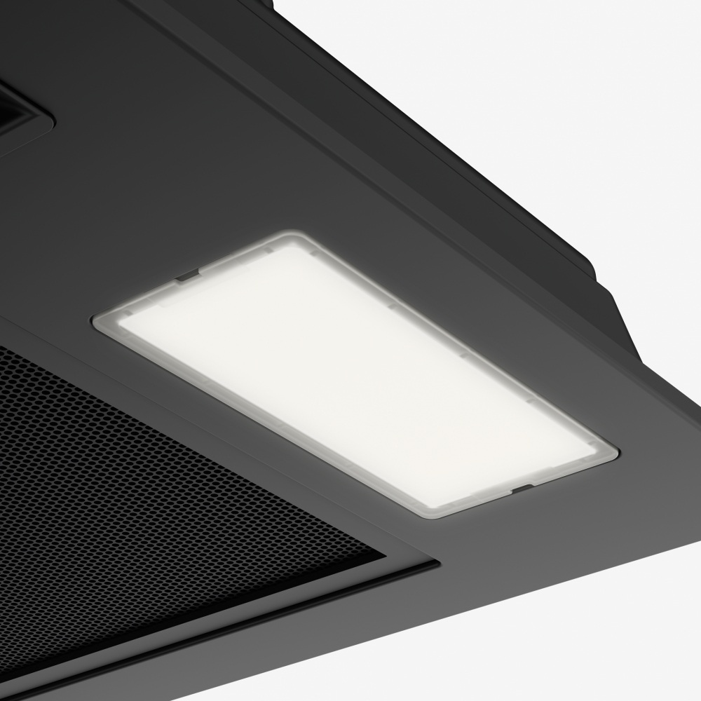 Встроенное освещение — функция, которая присутствует практически во всех современных вытяжках. Центрального освещения часто недостаточно для хорошего обзора рабочей зоны, особенно если над ней установлен подвесной шкаф. Интегрированные в вытяжку лампы позволяют готовить с комфортом, не напрягая зрение, их можно включать независимо от использования самой вытяжки.