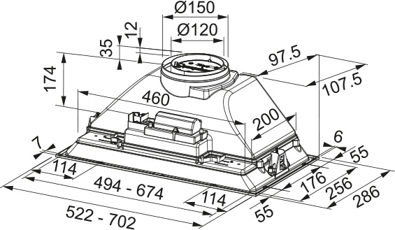 У многих встраиваемых моделей глубина может регулироваться, а рабочая всасывающая поверхность — увеличиваться благодаря выдвижному козырьку, но габариты корпуса такой вытяжки должны соответствовать размерам подвесного шкафа. Выбирать основные размеры вытяжки с соблюдением всех требований эффективности и безопасности работы следует также не в ущерб общему дизайну помещения.