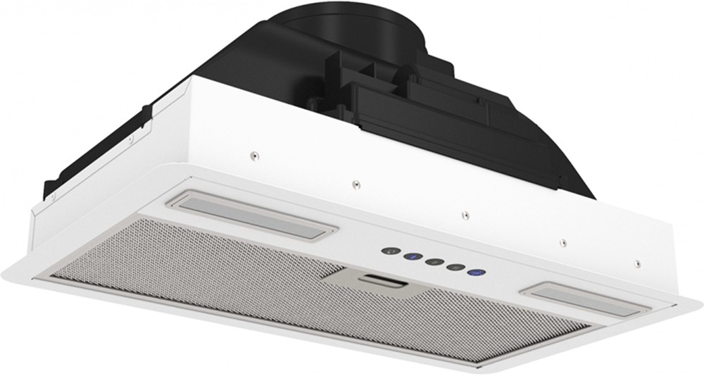 Вытяжка, встраиваемая в потолок, часто устанавливается над кухонным островом в просторной кухне и отличается достаточно высокой мощностью: она может работать как в режиме рециркуляции, так и в режиме отвода, так как воздуховод также скрыт в потолке. Вытяжки могут монтироваться в подвесной потолок либо устанавливаться в специальные многоярусные конструкции из гипсокартона непосредственно во время ремонта кухни. Для управления ими используется пульт ДУ.