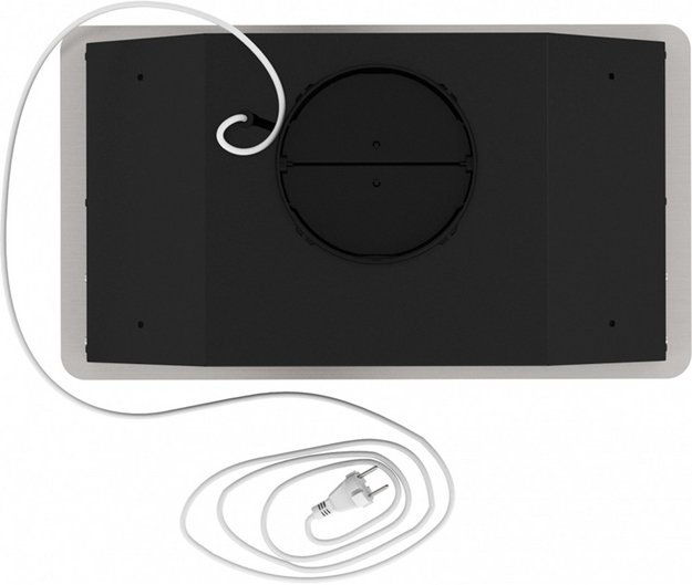 Воздух всасывается по периметру вытяжки через узкие щели. Он собирается в потоки, которые направляются прямо к фильтрам внутри, не рассеивается на кухне. Благодаря этой технологией вытяжку можно сделать компактнее и энергоэффективнее.