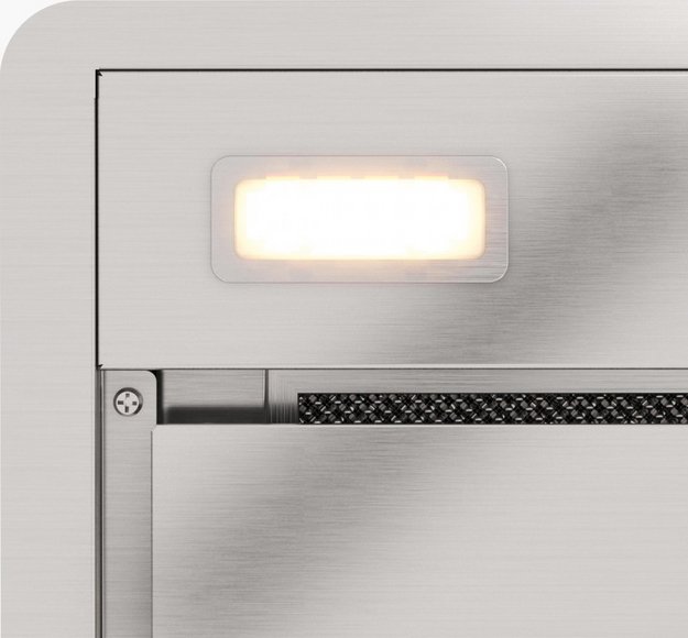 Встроенное освещение — функция, которая присутствует практически во всех современных вытяжках. Центрального освещения часто недостаточно для хорошего обзора рабочей зоны, особенно если над ней установлен подвесной шкаф. Интегрированные в вытяжку лампы позволяют готовить с комфортом, не напрягая зрение, их можно включать независимо от использования самой вытяжки.