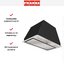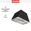 Угловые вытяжки — разновидность купольных. В соответствии со своим названием эти устройства крепятся над угловыми варочными поверхностями, удачно занимая свободное место в углу помещения.