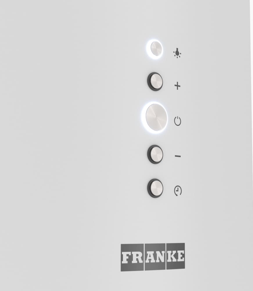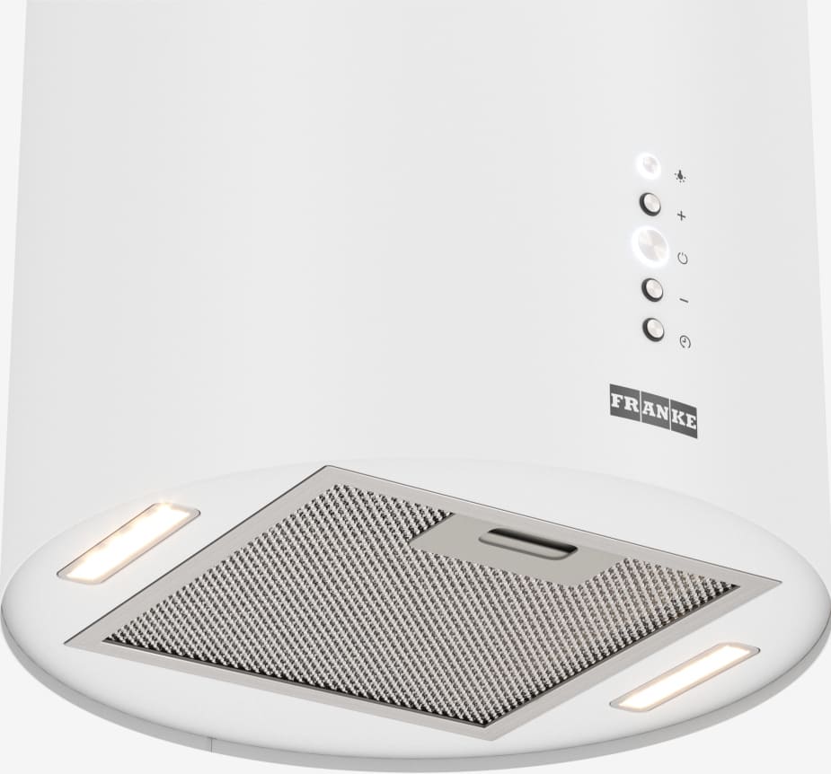 Крепление вытяжки к стене — стандартное для многих моделей, ими удобно управлять, так как кнопки находятся на расстоянии вытянутой руки. Обратите внимание на цветовые сочетания модели Franke AXIS WH 35, чтобы органично вписать ее в свою квартиру. Оттенок корпуса: белый. Благодаря лампочкам, которые расположены на нем, можно освещать плиту и столешницу рядом, чтобы готовить было еще проще и приятнее.