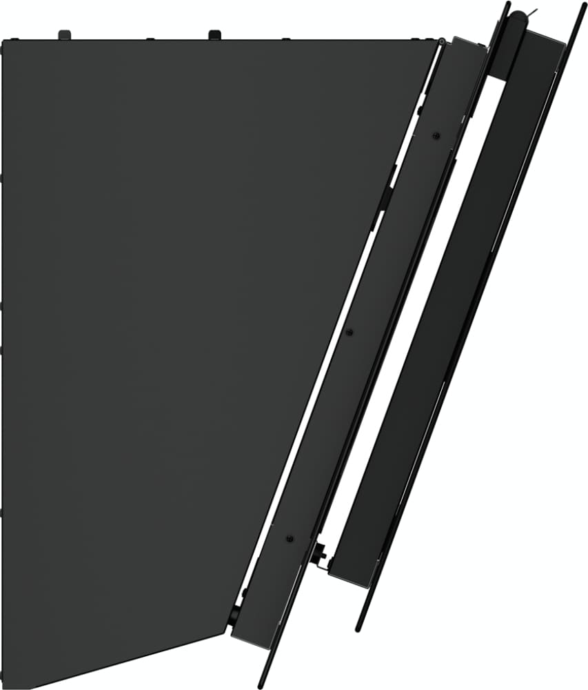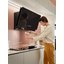 Воздух всасывается по периметру вытяжки через узкие щели. Он собирается в потоки, которые направляются прямо к фильтрам внутри, не рассеивается на кухне. Благодаря этой технологией вытяжку можно сделать компактнее и энергоэффективнее.