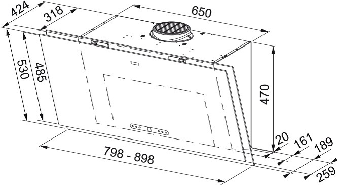 У многих встраиваемых моделей глубина может регулироваться, а рабочая всасывающая поверхность — увеличиваться благодаря выдвижному козырьку, но габариты корпуса такой вытяжки должны соответствовать размерам подвесного шкафа. Выбирать основные размеры вытяжки с соблюдением всех требований эффективности и безопасности работы следует также не в ущерб общему дизайну помещения.