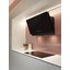 Вытяжки с наклонной фронтальной панелью позволяют освободить пространство над варочной панелью, при этом мощность забора воздуха не страдает от конфигурации модели. Такими вытяжками удобно управлять, так как кнопки обычно находятся спереди, доступ к ним максимально облегчен. Зачастую есть всасывание по периметру.
