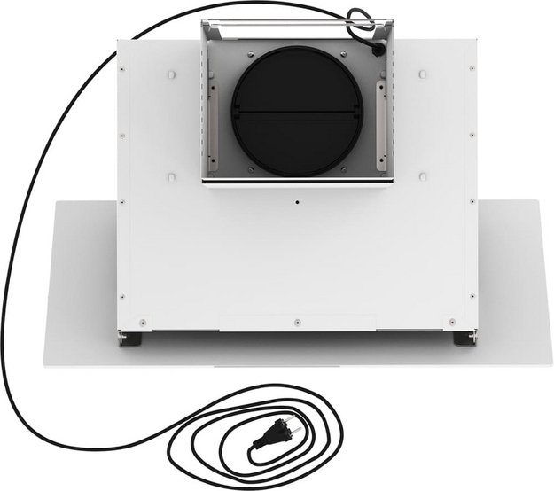 Вытяжка работает в режимах отвода и циркуляции, поэтому загрязнения удаляются из комнаты и перенаправляются в воздуховод, при этом можно очистить воздух и использовать повторно за счет возвращения его в помещение. Количество скоростей в этой модели: 3 шт. При этом максимальная производительность составляет 750 куб.м./ч. Уровень шума при полной загруженности — 69 дБ.