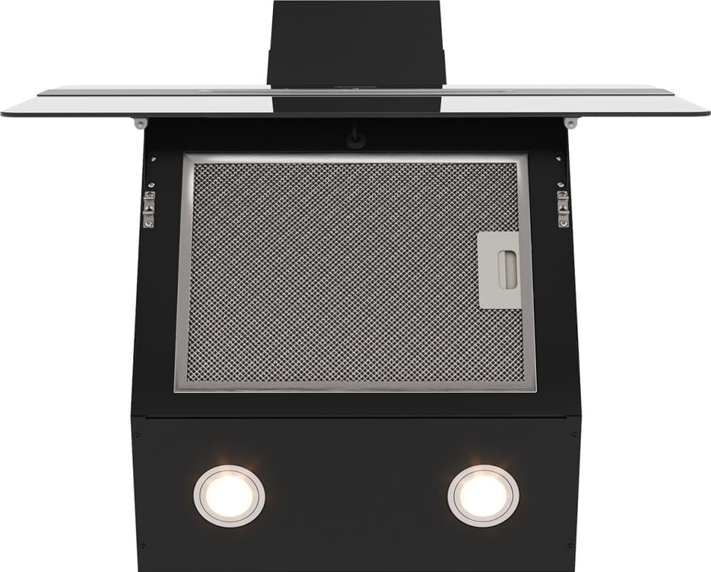 Воздух всасывается по периметру вытяжки через узкие щели. Он собирается в потоки, которые направляются прямо к фильтрам внутри, не рассеивается на кухне. Благодаря этой технологией вытяжку можно сделать компактнее и энергоэффективнее.
