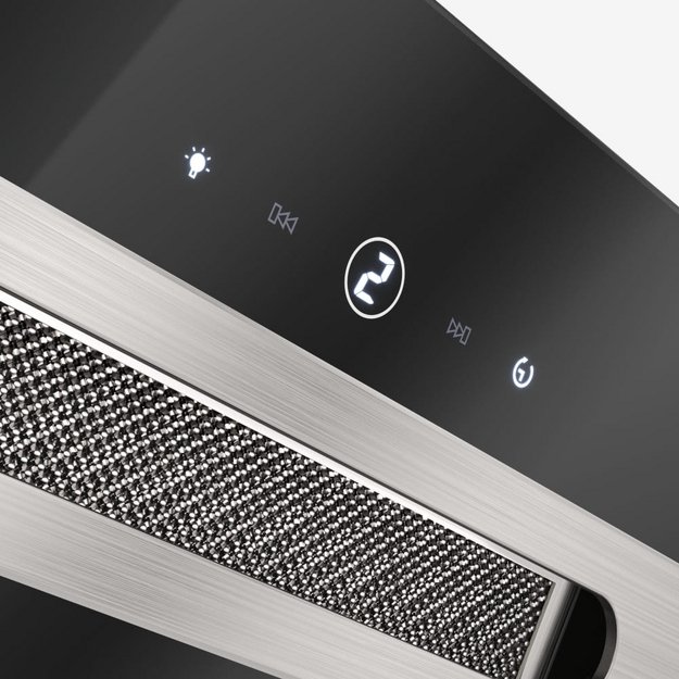 Сенсорная электронная панель управления оснащается цифровым дисплеем, на котором высвечивается основная информация о текущем состоянии устройства. Для выбора скорости всасывания в таких вытяжках будет достаточно одной кнопки: ее последовательное нажатие позволяет изменять ступени мощности, а их значение появляется на дисплее.