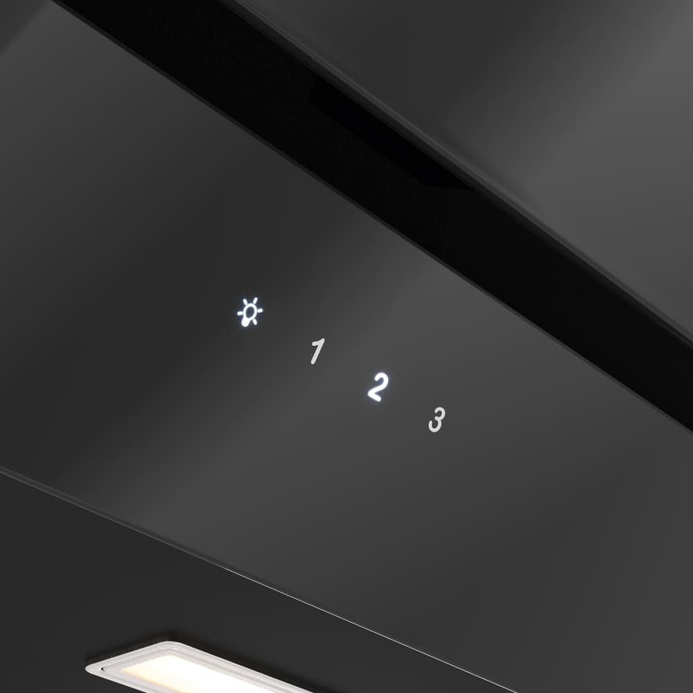 Встраиваемые и простые настенные модели, как правило, оснащаются боковой панелью управления, состоящей из нескольких кнопок. Их количество зависит от числа скоростей, наличия интенсивного режима и встроенного освещения. Боковое расположение панели управления делает вытяжку еще более незаметной.