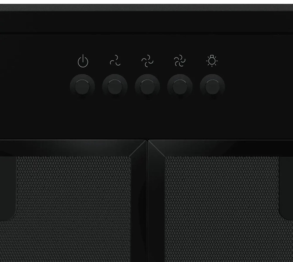 Встраиваемые и простые настенные модели, как правило, оснащаются боковой панелью управления, состоящей из нескольких кнопок. Их количество зависит от числа скоростей, наличия интенсивного режима и встроенного освещения. Боковое расположение панели управления делает вытяжку еще более незаметной.