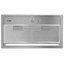 Фурнитура из нержавеющей стали — принадлежность вытяжек современного дизайна: наклонных, островных, потолочных. Панели, декоративные фильтры и решетки хорошо сочетаются со стеклом всех оттенков, а также натуральным камнем.