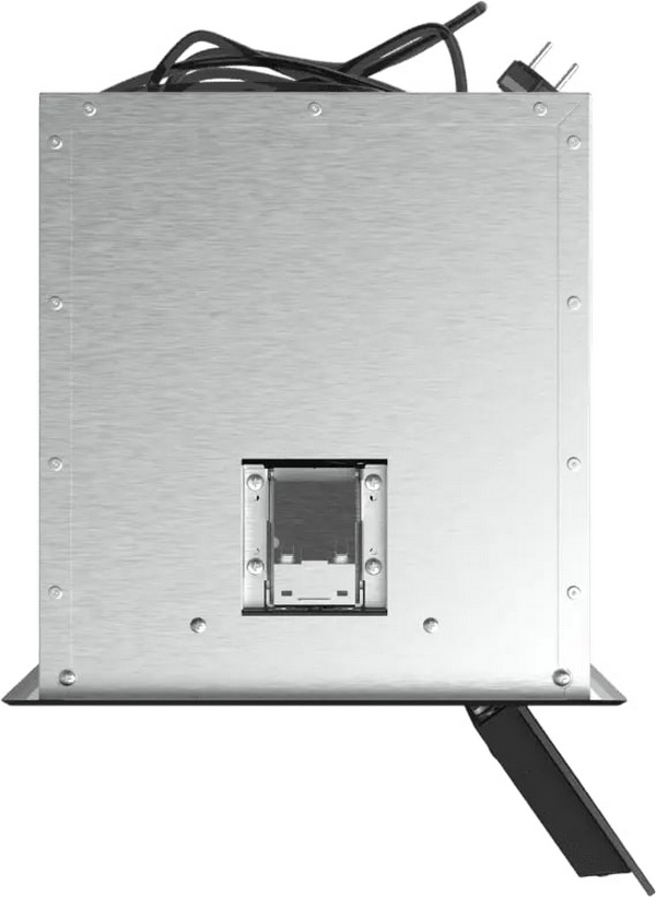 Вытяжки, встраиваемые в столешницу — эффективная инновация, которая подойдет для установки в кухне любой площади. Такие вытяжки размещаются за варочной поверхностью или рядом с ней. В отключенном состоянии всасывающая панель находится под столешницей, но после включения одной или нескольких конфорок она автоматически выдвигается при помощи специального лифтового механизма. Загрязненный воздух улавливается, не успевая распространиться по помещению. Когда вытяжка убрана, на виду остается только сенсорная панель управления. Недостатком подобных моделей является только сравнительно высокая цена.