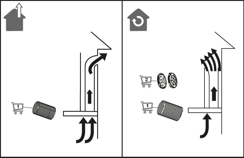 Циркуляция — воздух проходит через угольные и жироулавливающие фильтры, очищается и возвращается в комнату. Для активации этого режима в большинстве моделей нужно устанавливать угольный фильтр отдельно.