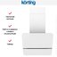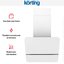 Данная вытяжка крепится на стену и имеет наклонную фронтальную панель, что придает изюминку дизайну и позволяет сохранить свободное рабочее пространство внизу. Обратите внимание на цветовые сочетания модели Korting KHC 69499 GW, чтобы органично вписать ее в свою квартиру. Оттенок корпуса: белое стекло. Благодаря лампочкам, которые расположены на нем, можно освещать плиту и столешницу рядом, чтобы готовить было еще проще и приятнее.
